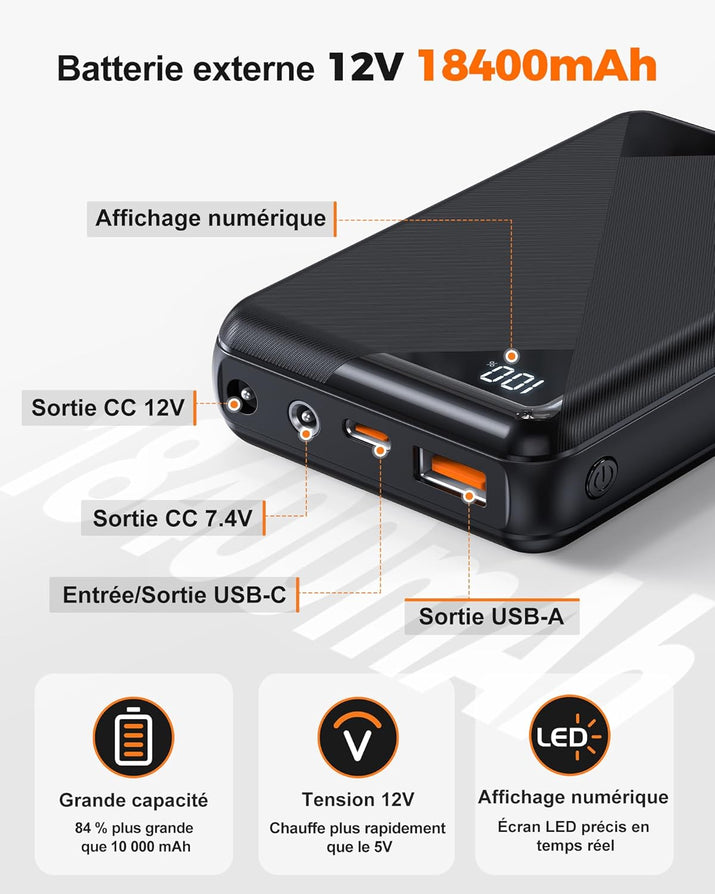 - Long-lasting 18,400 mAh battery